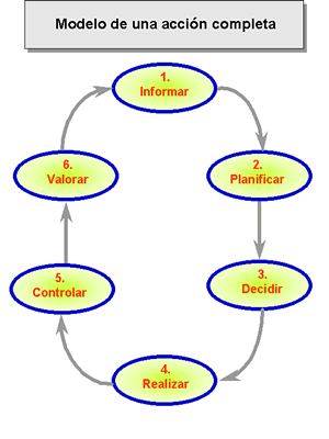 Evaluar y identificar el problema Este enfoque abierto (científico) tiene sus orígenes en el ámbito científico, pero también se aplica en la escuela secundaria. Mientras el currículum para la formación profesional define a priori una estructura básica que deberá utilizarse para la formulación de los problemas, en la educación técnica media las definiciones curriculares en general son menos estrictas al respecto. Pero como esto varía según el diseño curricular, hemos propuesto una formulación no tan abierta del proyecto. Partimos entonces de que la tarea de aprendizaje-trabajo sea definida previamente por el docente, como ocurre en la práctica de las distintas formas de la formación técnico-profesional en América Latina. Sin embargo, no queremos descartar la opción de una formulación abierta de las preguntas para aquellos grupos de alumnos que ya tienen cierta experiencia con esta metodología. En estos casos es posible que docente y alumnos formulen a partir del análisis del problema conjuntamente la tarea de aprendizaje-trabajo. La diferencia entre los métodos de materiales-guía y de proyectos, respectivamente, reside en el grado de autonomía del trabajo de los alumnos. En el método de proyectos, ya la planificación es responsabilidad, en la mayor medida posible, de los alumnos. La tarea de aprendizaje-trabajo se formula más abiertamente en este sentido, estimulando la creatividad de los alumnos para desarrollar y encarar autónomamente distintos caminos de aprendizaje. En este contexto, el error abre el paso a la reflexión. Con miras al paradigma constructivista, el método de proyectos es muy seductor por tener como objetivo la acción autónoma de los alumnos. Sin embargo es preciso que primero aprendan a aprender en forma independiente, por lo cual es recomendable combinar el método de proyectos con el método de los materiales-guía. El potencial de intervención didáctica de los docentes reside en la formulación precisa de la tarea. Es posible formular una tarea claramente definida dentro de un contexto complejo y proporcionar materiales-guía elaborados específicamente. De esta manera se brinda a los alumnos un marco de acción acotado dentro del cual desarrollarán sus tareas y aprendizajes. Conviene formular la tarea de aprendizaje-trabajo en forma más abierta recién cuando los alumnos están en condiciones de aplicar el principio de la acción completa a los seis pasos en su totalidad, es decir cuando tengan las herramientas para proceder metodológicamente. Hay que evitar que se produzcan fracasos por plantear exigencias demasiado elevadas a los alumnos. Cuando se instrumenta idóneamente, el Aprendizaje por la Acción se caracteriza justamente por motivar intrínsecamente y por promover la autoestima de los alumnos en la resolución de la tarea. Este proceso requiere de una intervención cuidadosa por parte de los docentes. En referencia a Vigotzkij y las Zonas de Desarrollo Próximo esto quiere decir que los docentes deberán desarrollar métodos para identificar exactamente las ZDP de sus grupos de alumnos para trabajar con el método de proyectos. Éste es sin duda uno de los desafíos más grandes para el docente porque implica que deberá paulatinamente renunciar a "enseñar", "dejando hacer" a los alumnos en beneficio de su aprendizaje. El "dejar hacer" es muy difícil para el docente porque así los procesos se vuelven menos previsibles para él y esto implica la renuncia a una parte de su poder y control. Para que el docente se anime a esta renuncia, requiere de un grado mucho mayor de desenvoltura. La flexibilidad necesaria solo se adquiere paulatinamente, por lo cual resulta sumamente recomendable acompañar a los docentes en este proceso con instancias de capacitación a lo largo de un tiempo prolongado. Así se les brinda un espacio para explicitar las inseguridades, conocer métodos y técnicas adecuadas y ensayarlos sistemáticamente como respuesta a situaciones pedagógicas complejas. La transición del estilo autocrático al estilo democrático suele venir acompañada por una serie de problemas disciplinarios. Para evitar que los docentes se frustren en sus intentos de innovación metodológica al transitar por este momento de desorganización que se experimenta inevitablemente con la implementación del Aprendizaje por la Acción, éstos deberán contar con el acompañamiento de docentes de perfeccionamiento capacitados para tal fin.